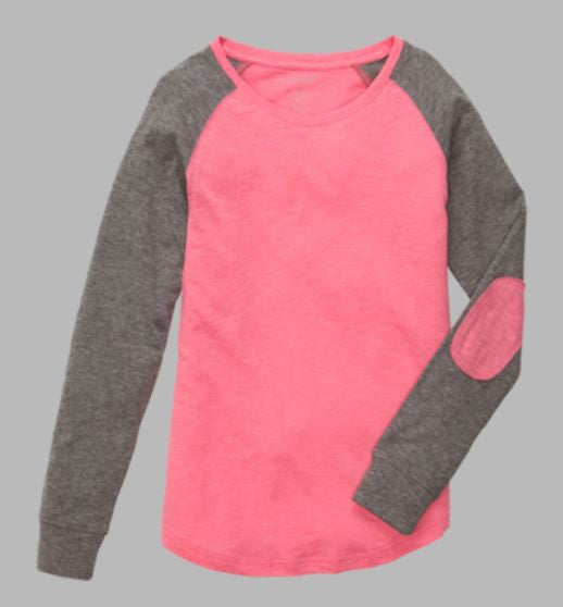 Contrast elbow patches on long sleeves.
